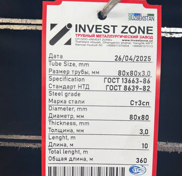 1) Все профильные трубы от INVEST ZONE упакованы в прямоугольную форму и закреплены стальными обвязочными лентами.